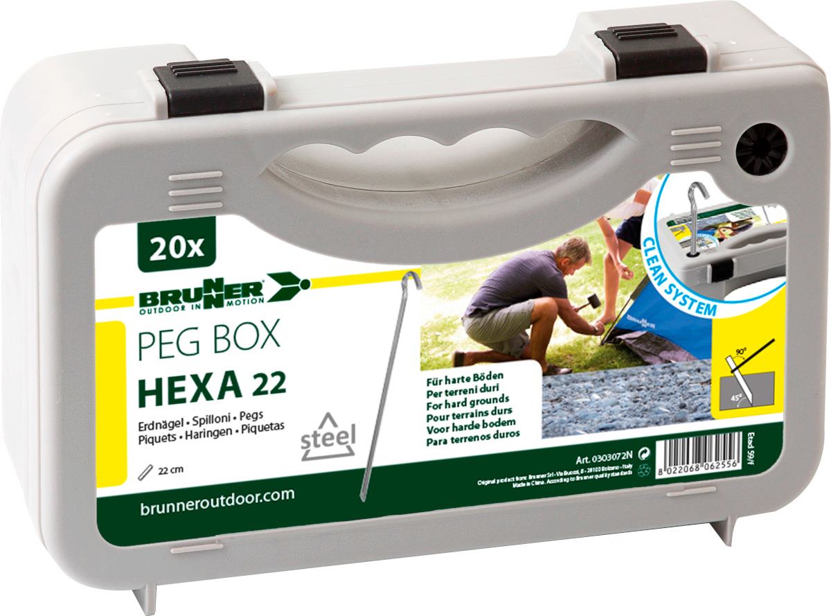 ŚLEDZIE BRUNNER SET PEG BOX HEXA 22 cm 20 szt. ZESTAW W WALIZCE