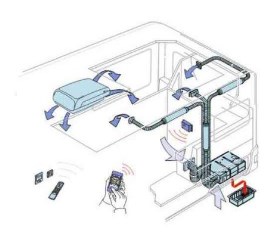 • Optymalna dystrybucja powietrza poprzez montaż klimatyzatora na dachu, dzięki czemu chłodne powietrze przepływa przez urządzenie do całego wnętrza