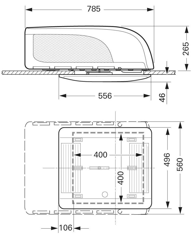 Wymiary zewnętrzne (dł. x szer. x wys.) 785 x 560 x 265 mm