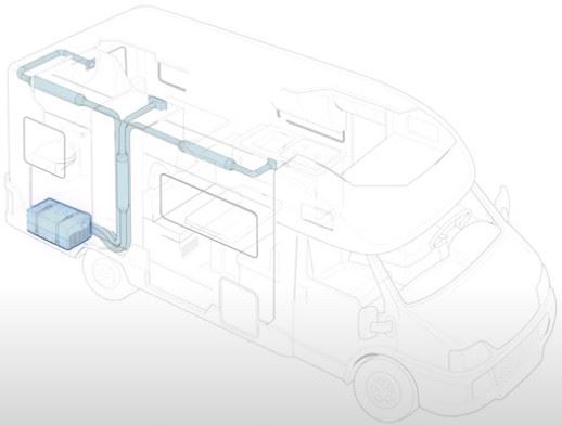 Chłodne powietrze rozprowadzane jest rurami w pojeździe kempingowym