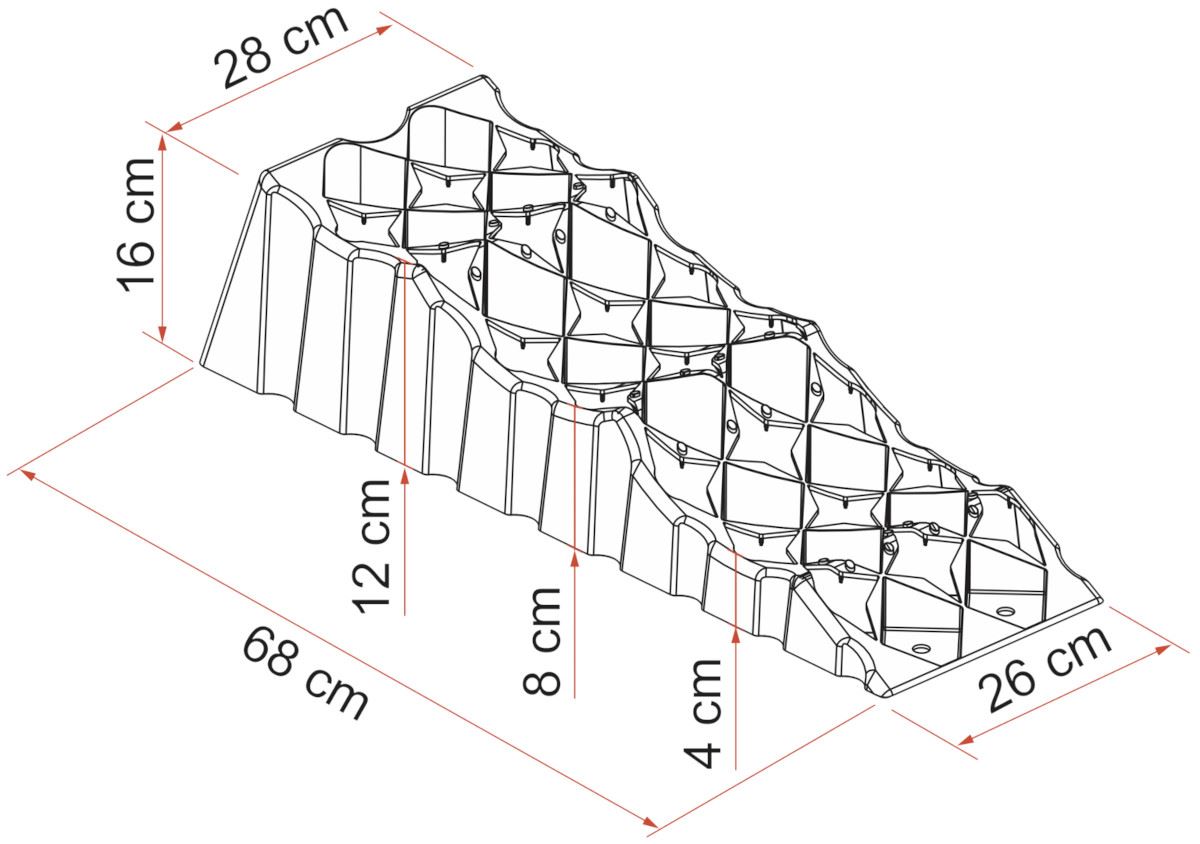 Najazd na 3 wysokościach: 4, 8,12 cm