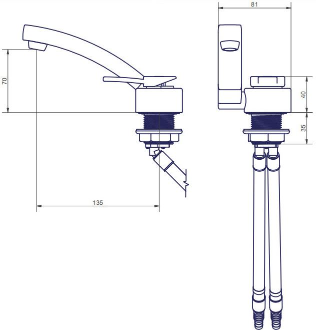 Kran, jednouchwytowa bateria, wylewka do kamperów i przyczep kempingowych