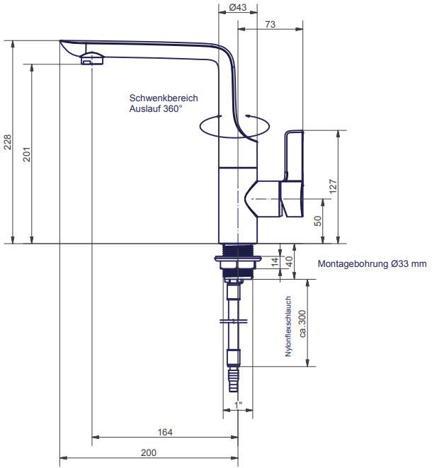Wysokość wylewki: 200 mm