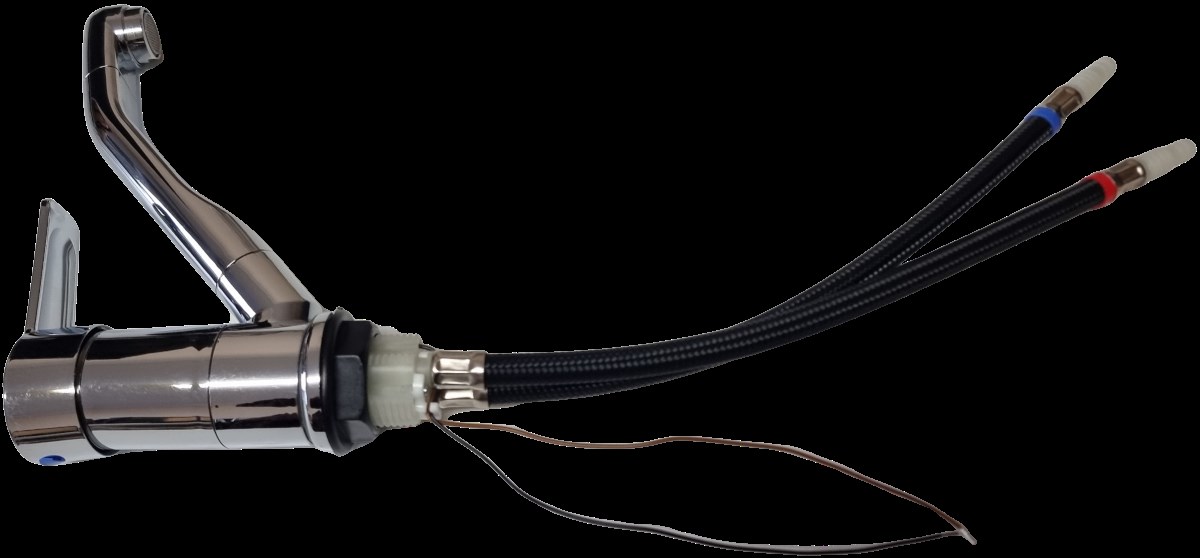 W komplecie dwa węże przyłączeniowe (do wody ciepłej i zimnej)