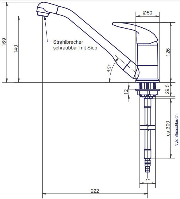 KRAN BATERIA COMET ROMA 33 mm 22 cm