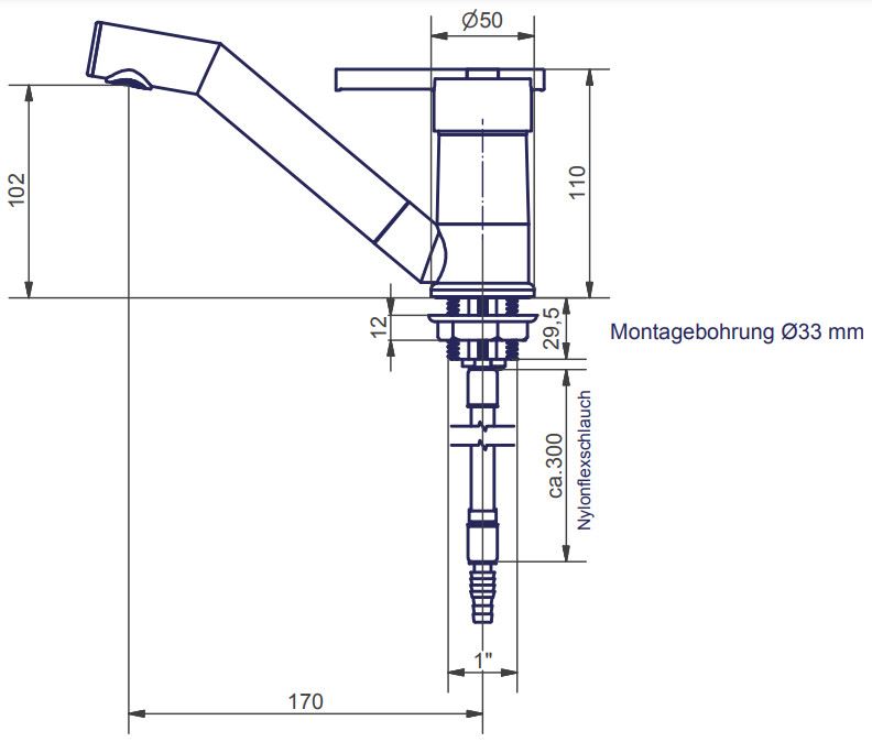 Kran, jednouchwytowa bateria, wylewka do kamperów i przyczep kempingowych