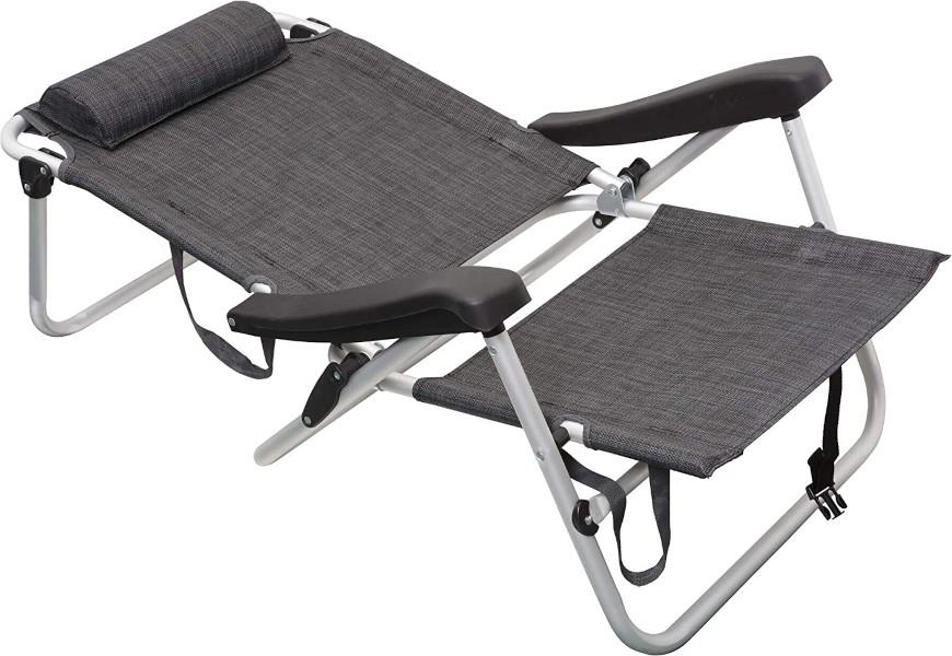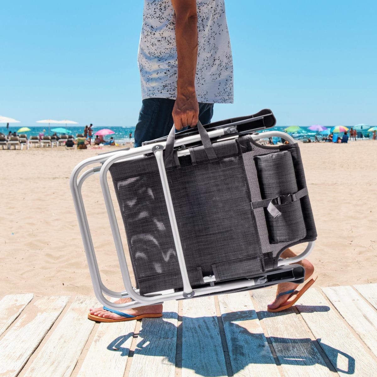 Krzesło plażowe z odchylanym oparciem w 4 pozycjach oraz poduszką pod szyję
