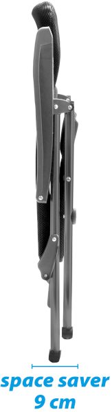 Kompaktowe krzesło składane z solidną, składaną aluminiową ramą, zaprojektowane specjalnie do minibusów i samochodów dostawczych