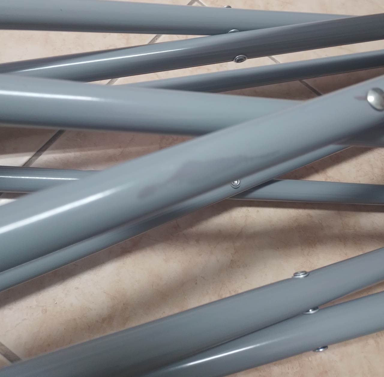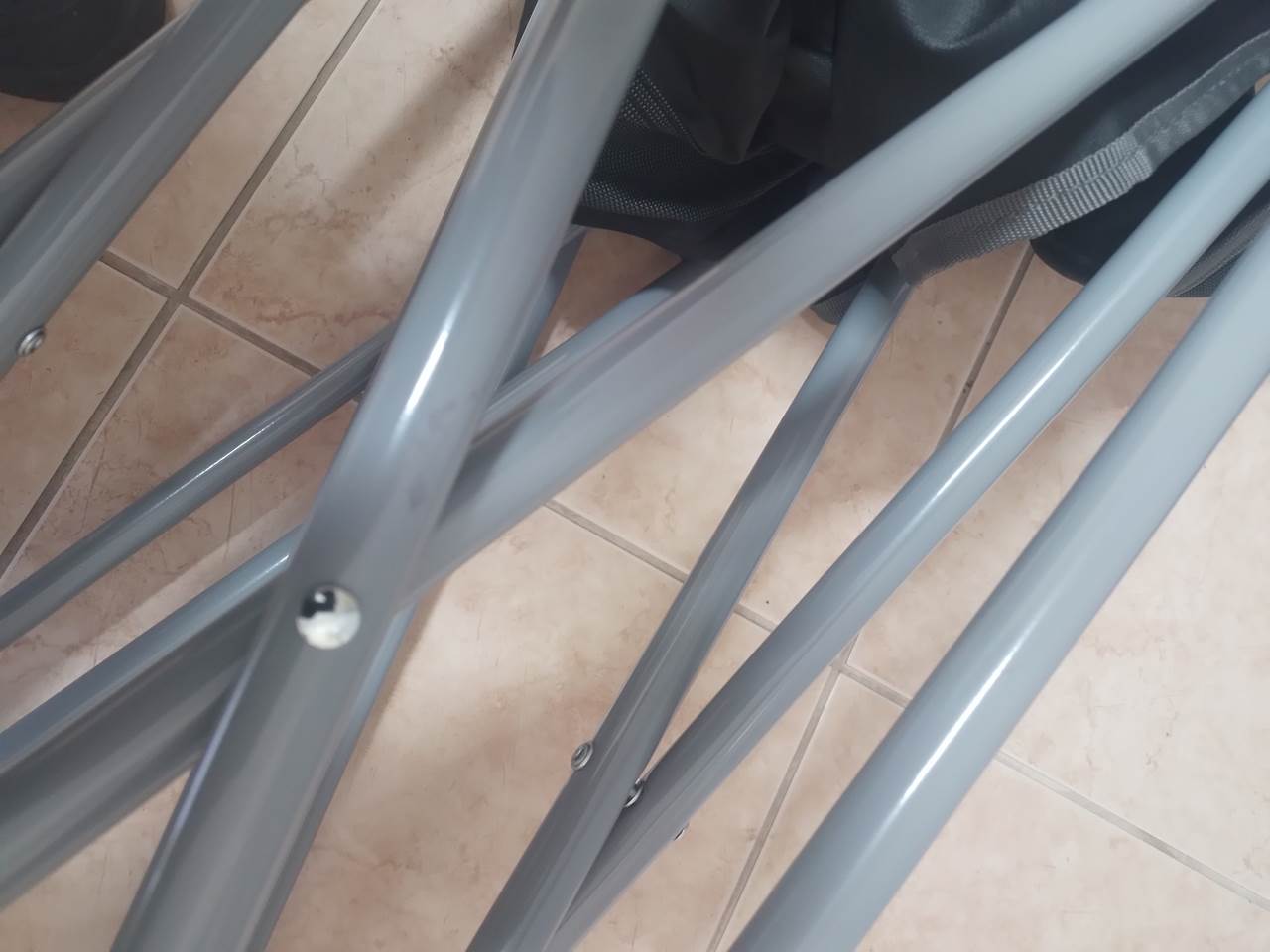 Ważne: Zdjęcie poglądowe, krzesło uszkodzone, posiada drobne zarysowania/odbarwienia na ramie krzesła oraz uszkodzoną/zabrudzoną torbę transportową, widoczne na zdjęciach poniżej!
