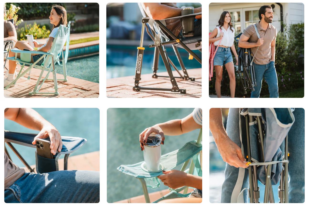 Ten średniej wielkości bujany fotel jest niższy niż standardowe fotele, oferując płynne i bezwysiłkowe bujanie na każdym terenie dzięki opatentowanej technologii Spring-Action Rocking Technology™