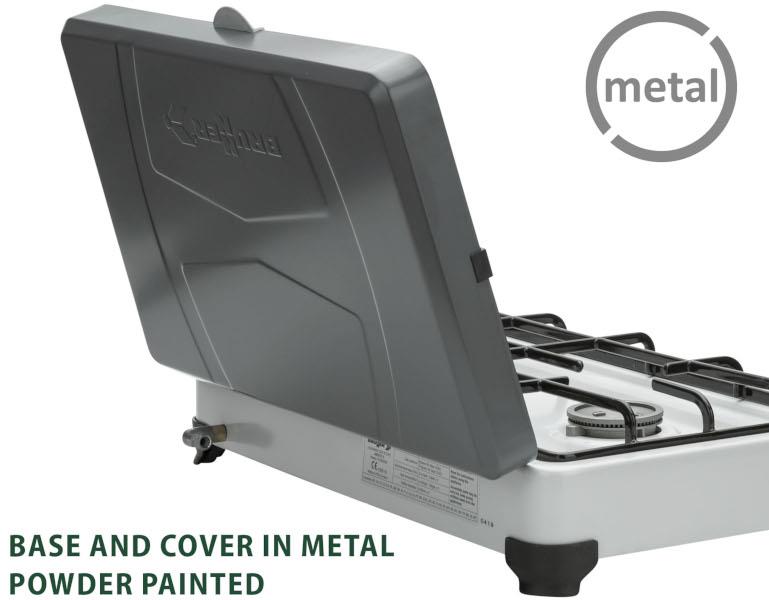 Kempingowa kuchenka gazowa z podstawą i pokrywą z metalu malowanego proszkowo