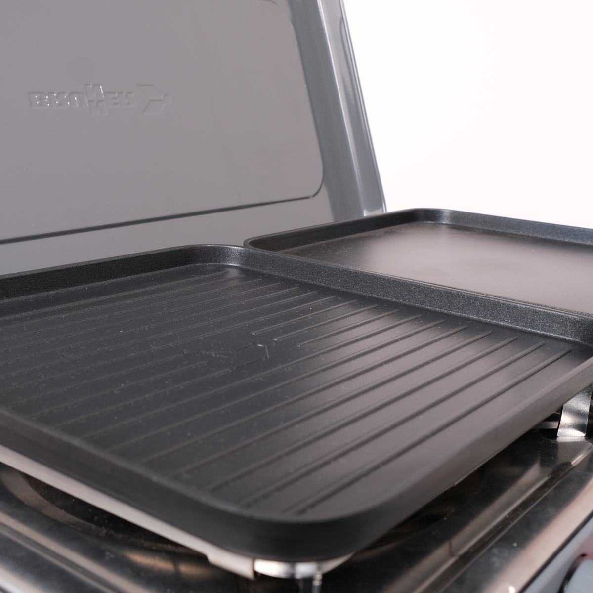 Płaska płyta grillowa nadaje się do przygotowywania ryb, śniadań, naleśników, jajek itp.