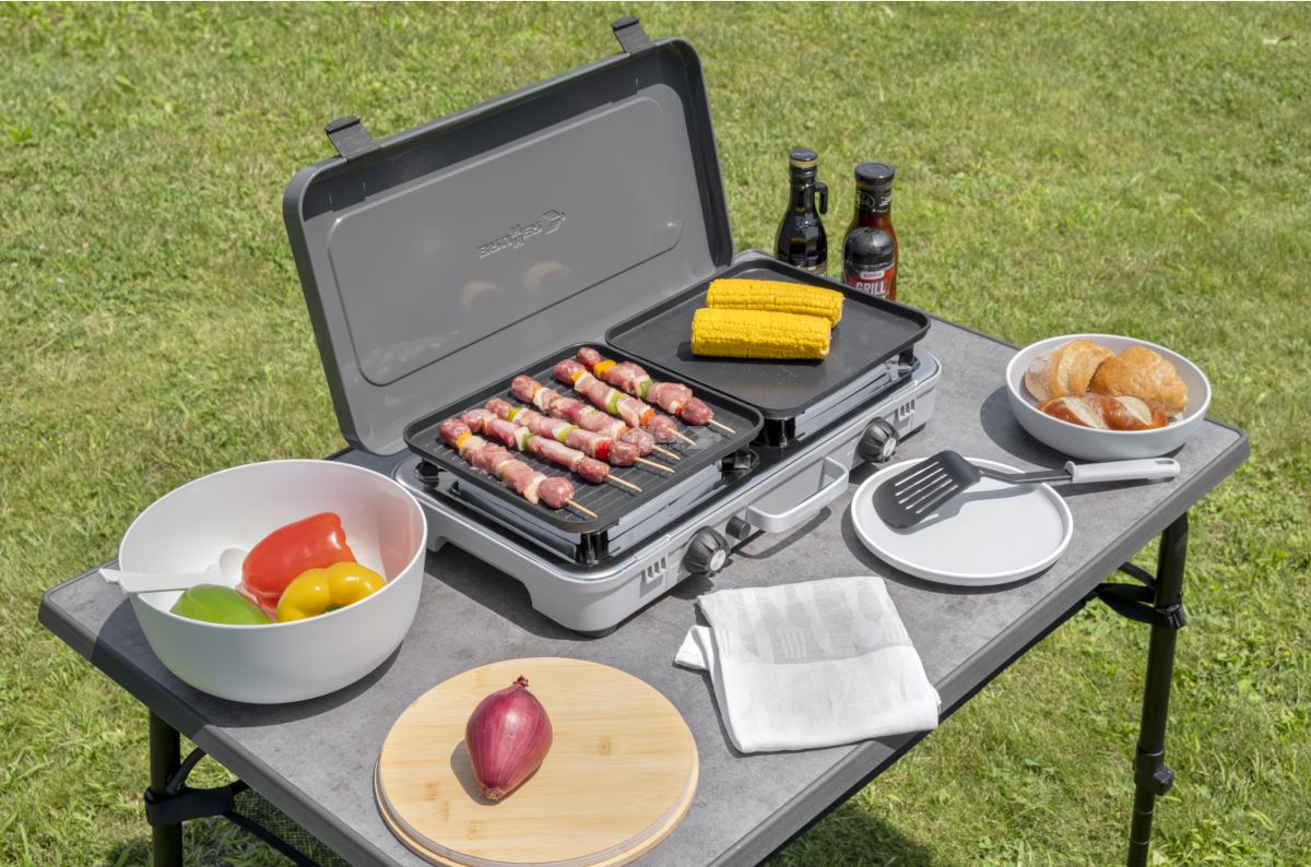 Żebrowana płyta nadaje się idealnie do grillowania warzyw, mięsa np. steków, kiełbasek, ryb albo mięsa mielonego do hamburgerów