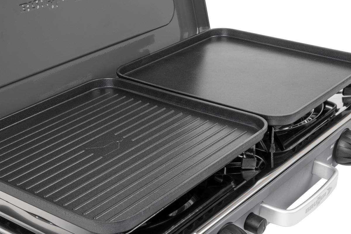 Gładka płyta nadaje się idealnie do smażenia ryby, omleta, naleśników, a na płycie żebrowanej możesz z łatwością grillować mięso, ryby, kurczaka czy warzywa