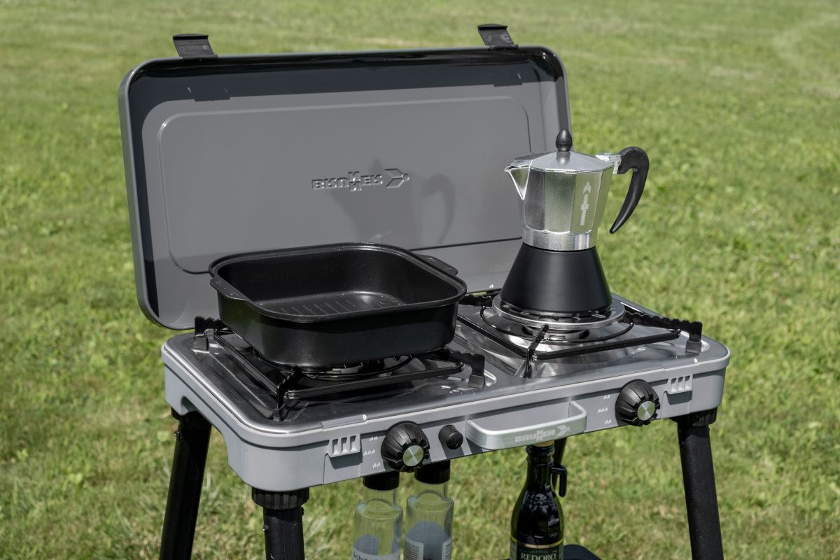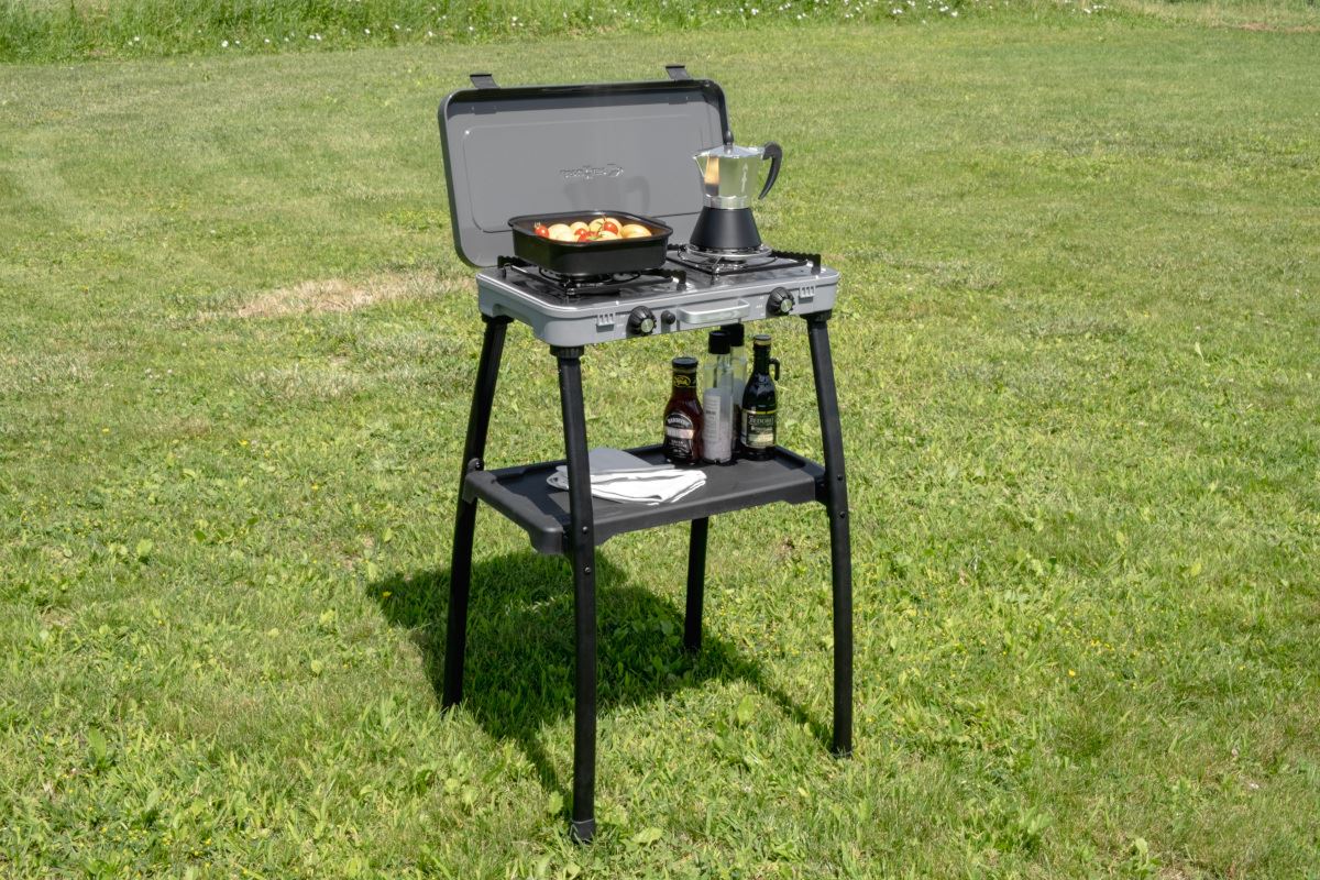 Z czterema solidnymi nóżkami i praktyczną tacą, umożliwiającą profesjonalne gotowanie na świeżym powietrzu