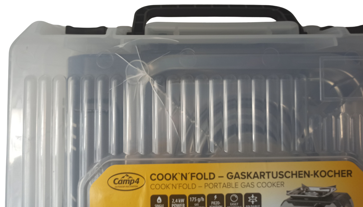 Ważne: Kuchenka jest nowa, walizka do przechowywania posiada niewielkie pęknięcie widoczne na zdjęciach, które nie przeszkadza w użytkowaniu!!!