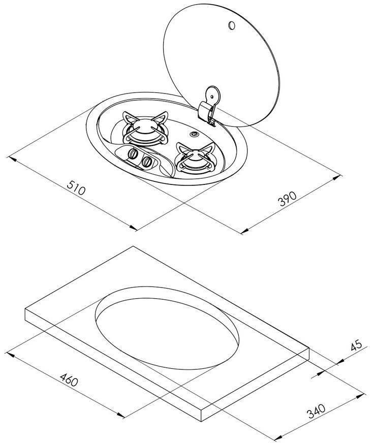 Owalna kuchenka, płyta gazowa bez iskrownika