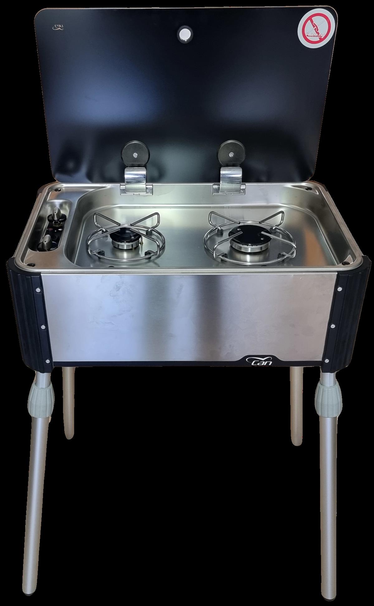 Przenośna kuchenka gazowa, wyposażona w wysuwaną podstawę(platformę) z wyciągiem