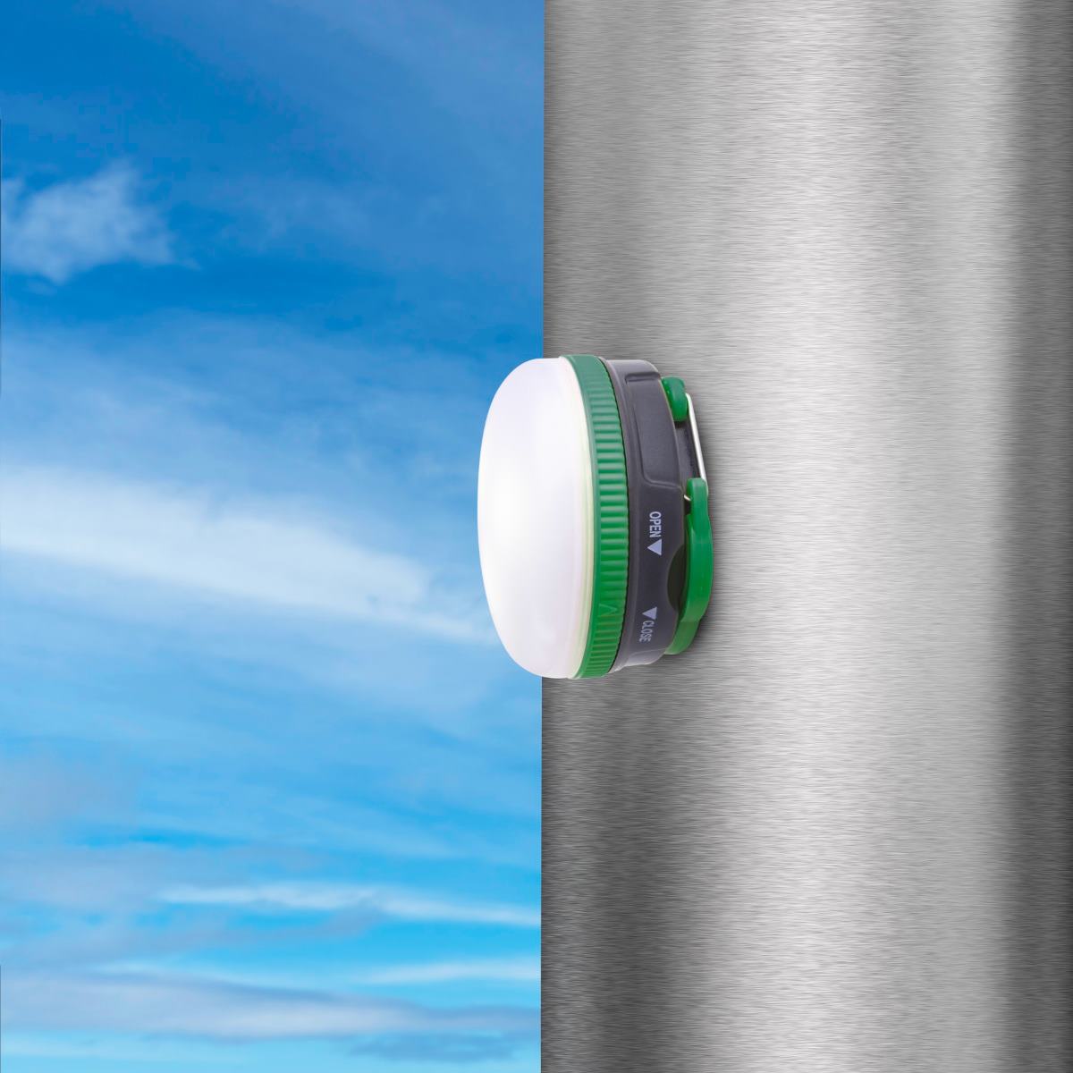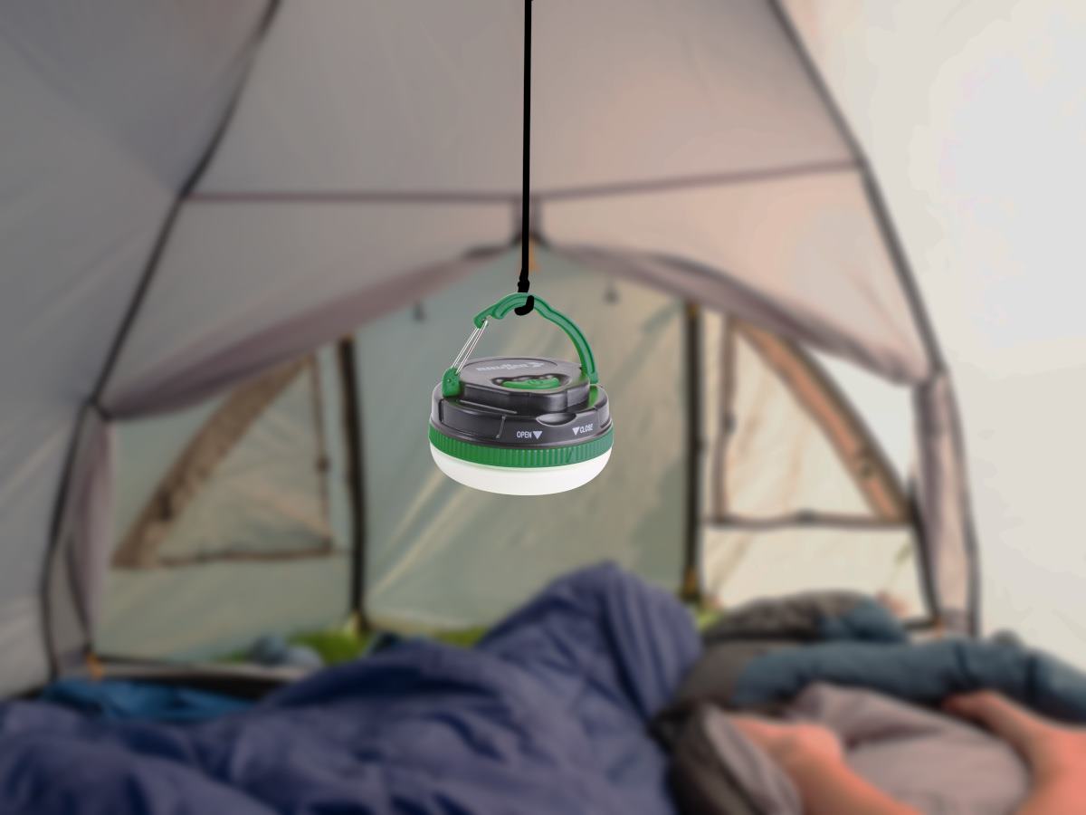 Kompaktowa lampa wisząca LED zapewniająca równomierne oświetlenie wnętrza namiotu w promieniu 360°