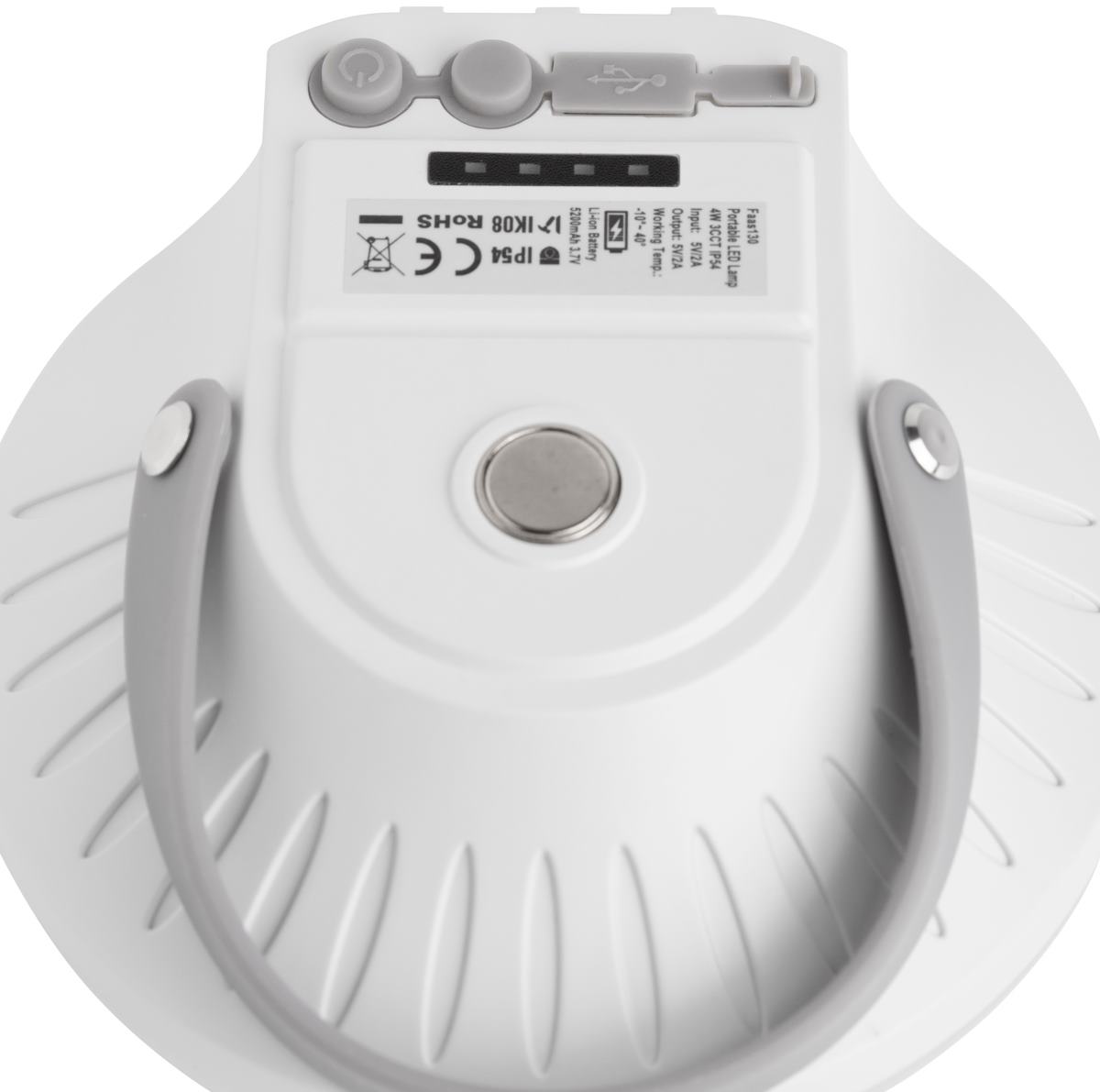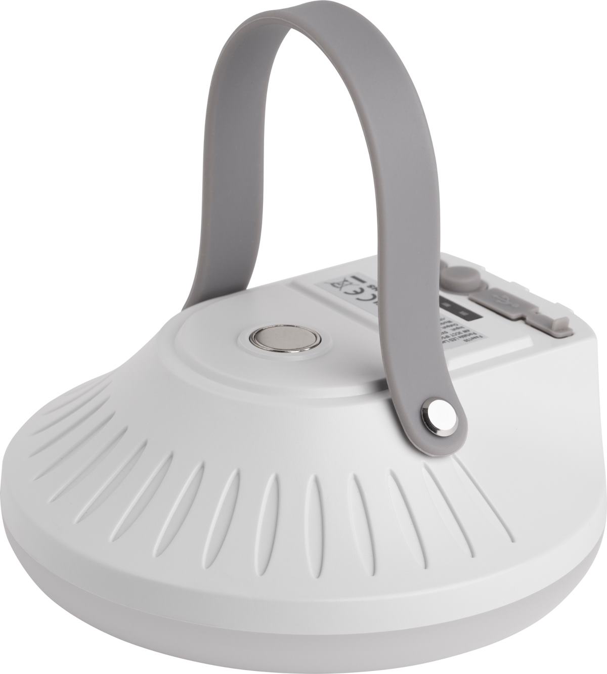 Lampa o eleganckim białym wzornictwie ma magnetyczną podstawę, umożliwiającą wygodne umieszczenie na dowolnej metalowej powierzchni