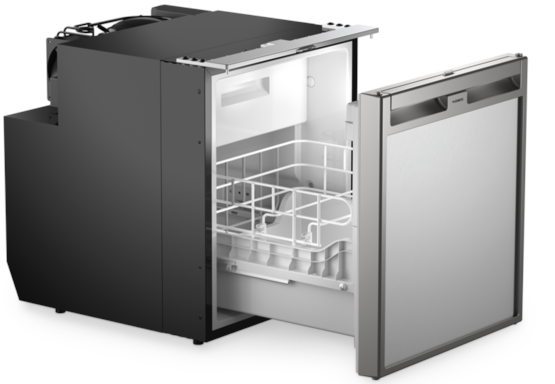 Kompresorowa technologia chłodzenia wykorzystywana w serii Dometic CRX zapewnia niezrównaną moc chłodzenia. Ale jak to działa? Otóż wykorzystywany jest tu czynnik chłodniczy, który w parowniku przechodzi ze stanu ciekłego w gazowy. Proces parowania pobiera ciepło z wnętrza lodówki, powodując spadek temperatury. Kompresor zasysa gazowy czynnik chłodniczy, spręża go i przesyła dalej, do skraplacza. Tam czynnik oddaje przyjęte ciepło do atmosfery, z powrotem przechodząc w stan ciekły i płynie do parownika, w którym cały proces zaczyna się od nowa. Zapewnia to doskonałą skuteczność chłodzenia nawet w skrajnych temperaturach otoczenia oraz możliwość zarówno chłodzenia, jak i głębokiego mrożenia.