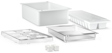 • Pudełka modułowe, pojemnik na kostki lodu, tacka na jajka