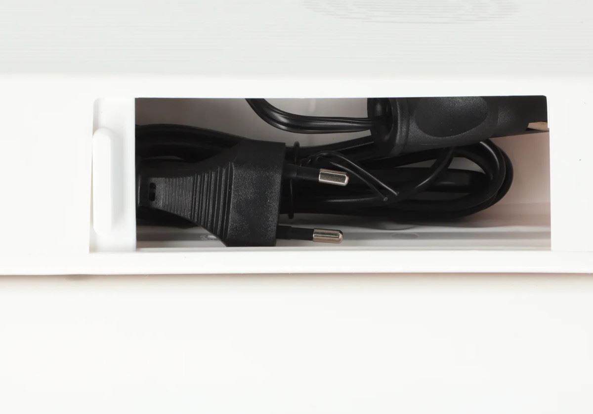 Duży schowek na wtyczki i kable 12V i 230V