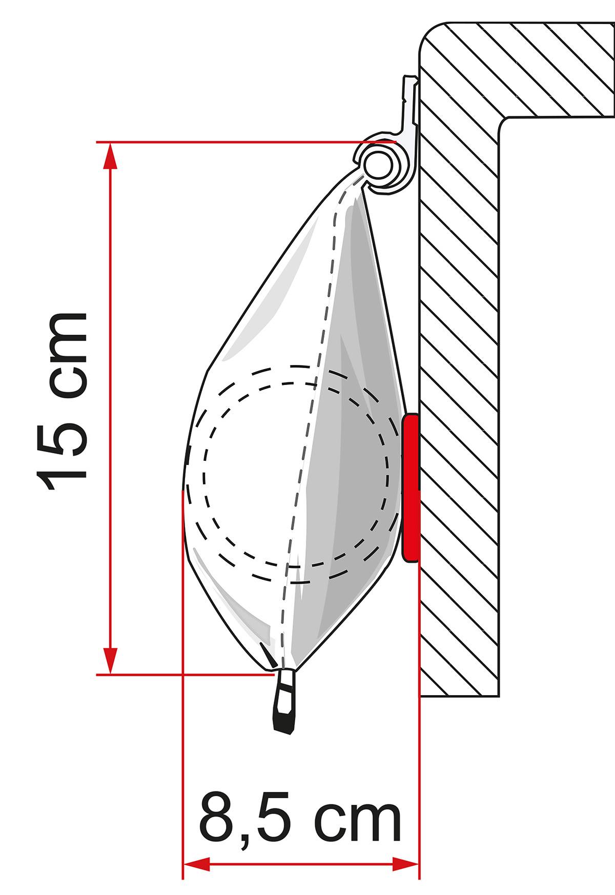 Wymiary boczne pokrowca: 8.5 x 15 cm
