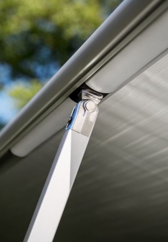 Możliwość równoczesnego rozkładania wsporników i nóżek ułatwia oraz przyspiesza rozsuwanie markizy