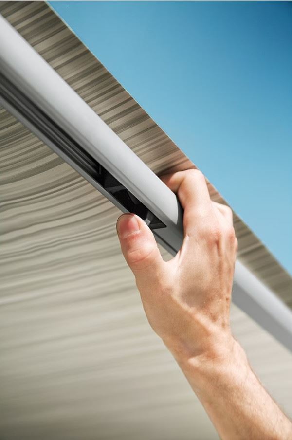 Możliwość równoczesnego rozkładania wsporników i nóżek ułatwia oraz przyspiesza rozsuwanie markizy