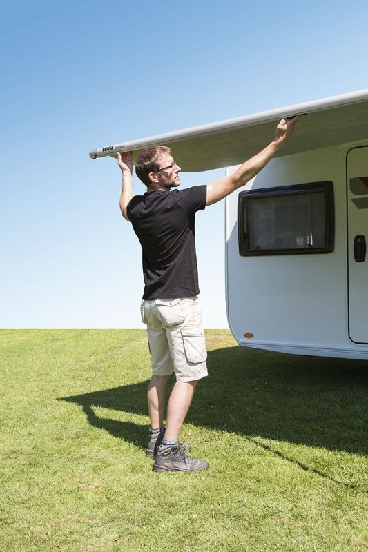 Możliwość równoczesnego rozkładania wsporników i nóżek ułatwia oraz przyspiesza rozsuwanie markizy