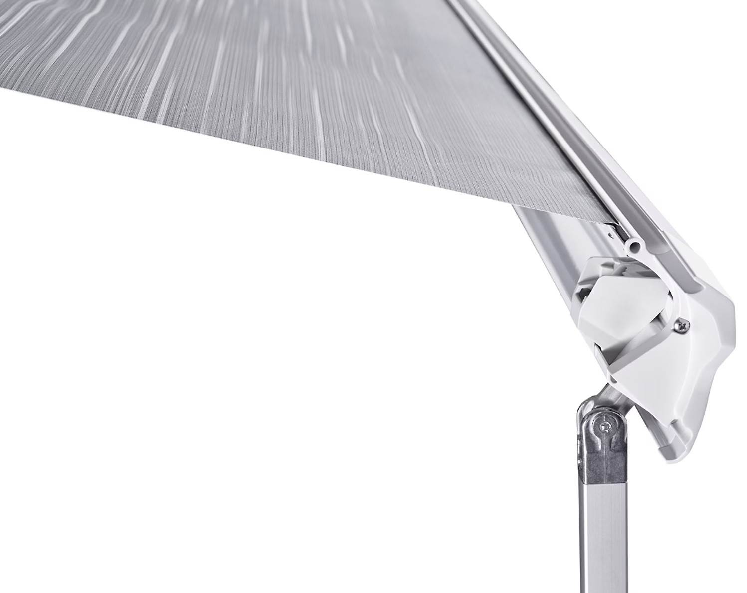 Możliwość wysuwania na odległość maksymalnie 2,5 m w celu powiększenia przestrzeni osobistej oraz ochrony przed słońcem i deszczem