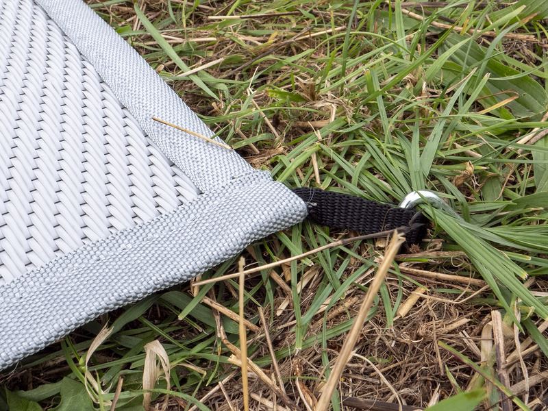 Starannie obszyta, na rogach pętelki do przymocowania maty do podłoża za pomocą śledzi