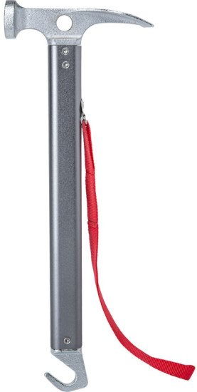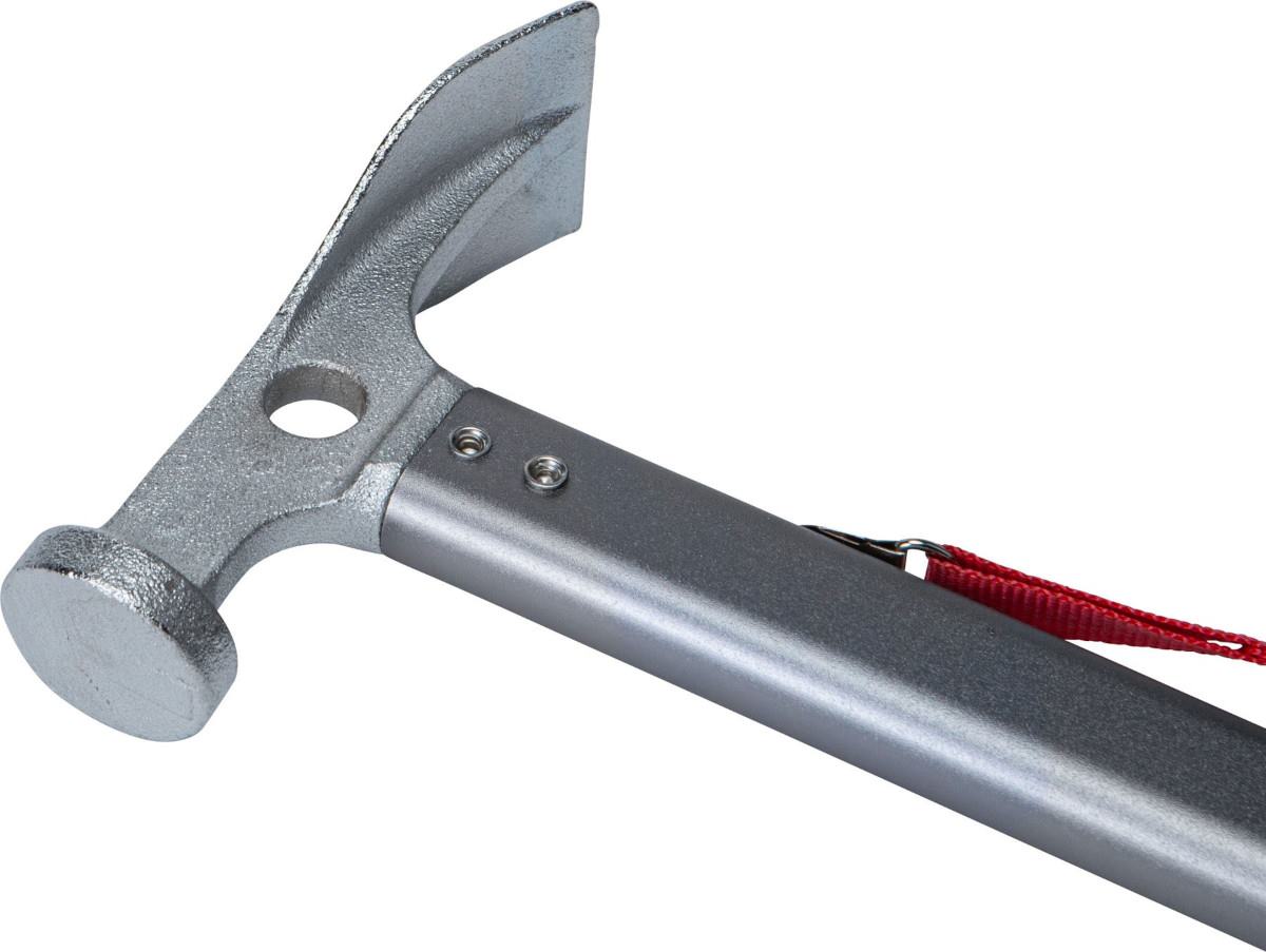 Posiada praktyczny hak do wyciągania kołków i pasek bezpieczeństwa na rękę