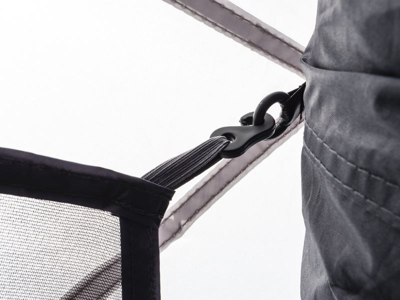 Ściany boczne mocowane są za pomocą haczyków i rzepów