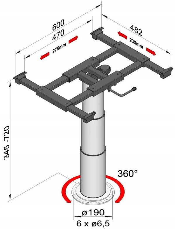 NOGA STOŁU OBROTOWA 600x482 mm OUTLET