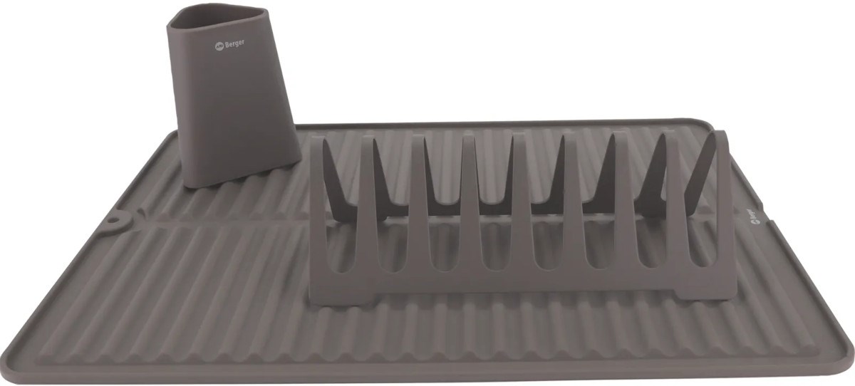 Zestaw składa się z wytrzymałego ociekacza do naczyń na maksymalnie 8 talerzy, elastycznej maty do suszenia oraz pojemnika na sztućce