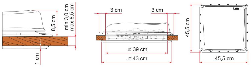 Wymiary otworu montażowego: 40 x 40 cm
