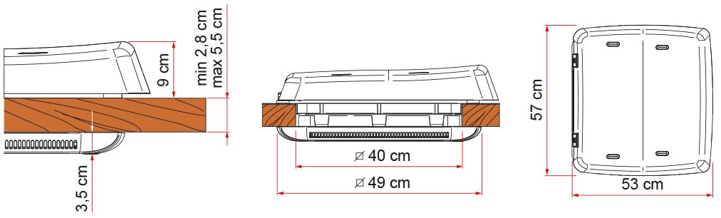 Wymiary zewnętrzne: 56,6 x 53,1 x 9,2 cm
