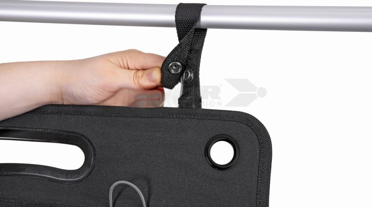 Posiada paski i dwa oczka umożliwiające zawieszenie organizera