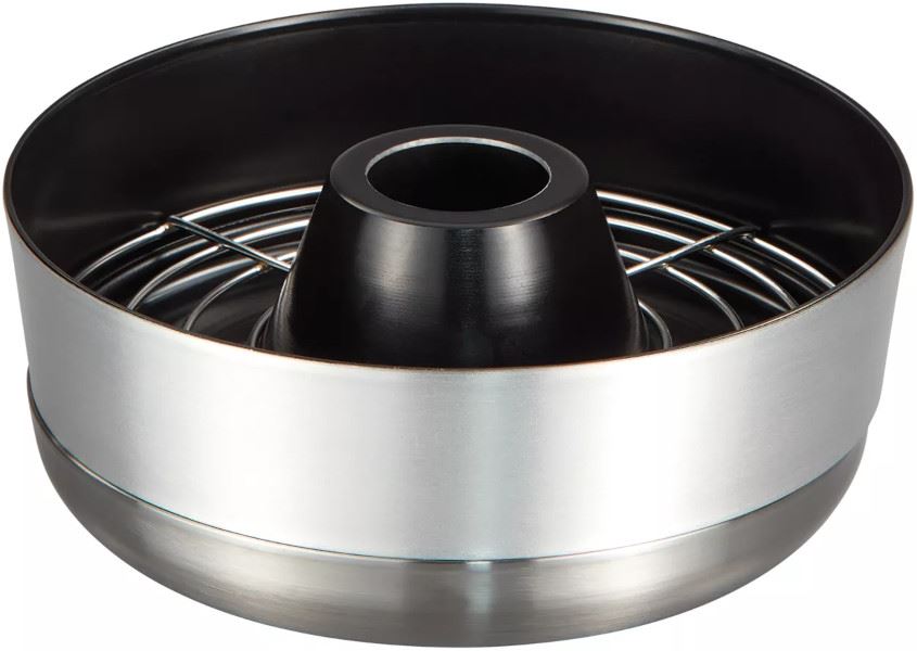 z otworem na środku wypełniona jest mniej więcej do połowy składnikami lub ciastem i pozwala na równomierne rozchodzenie się ciepła