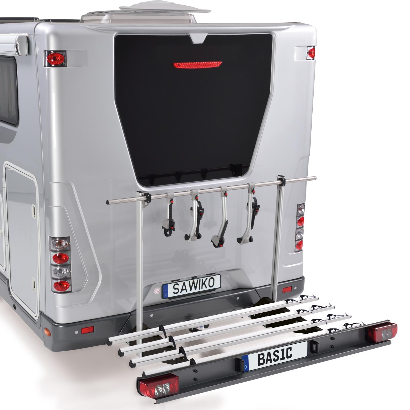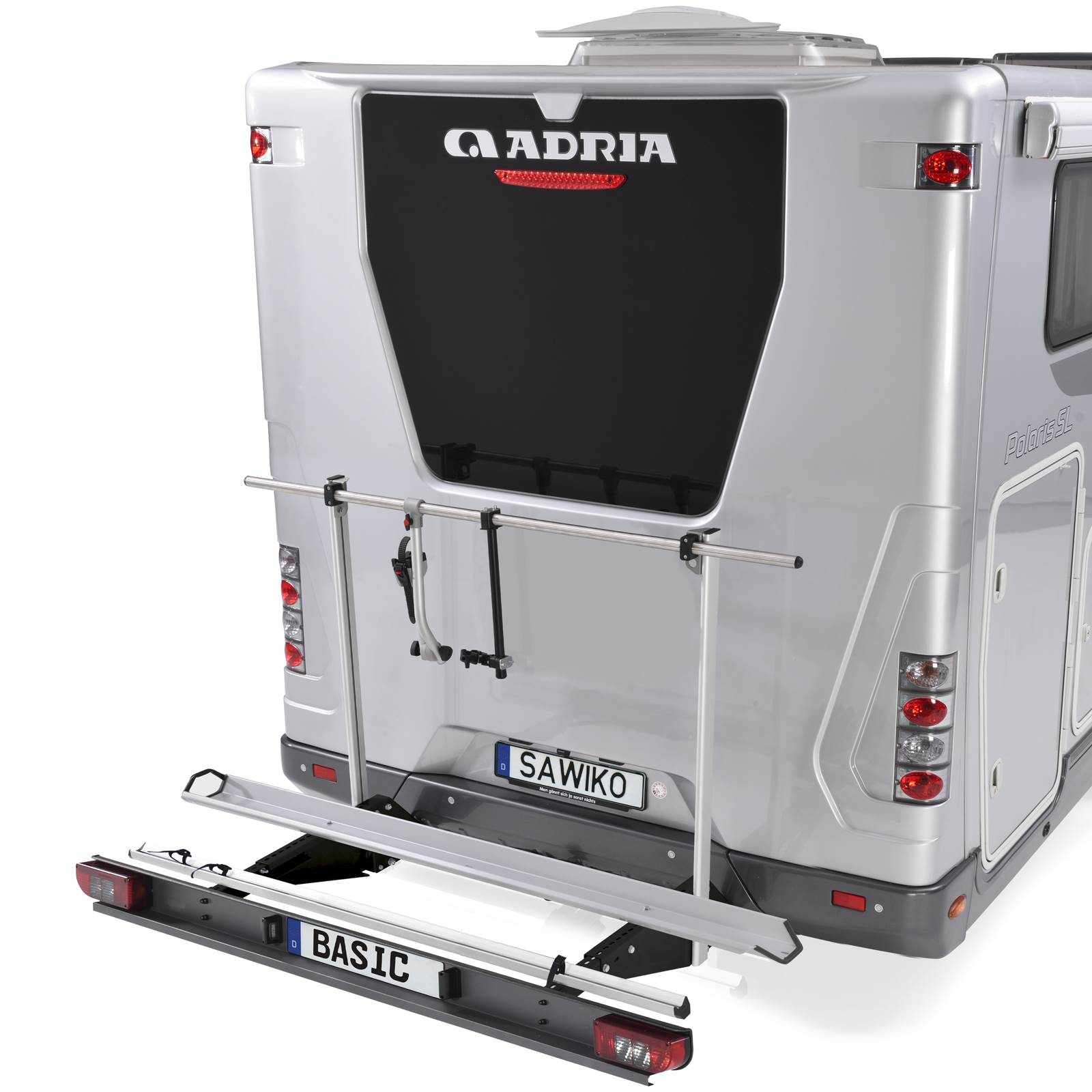 Praktyczne złączki zapadkowe na ramionach trzymających i szynach zapewniają szybkie i łatwe zabezpieczenie - do zabezpieczenia skutera potrzebny jest osobny