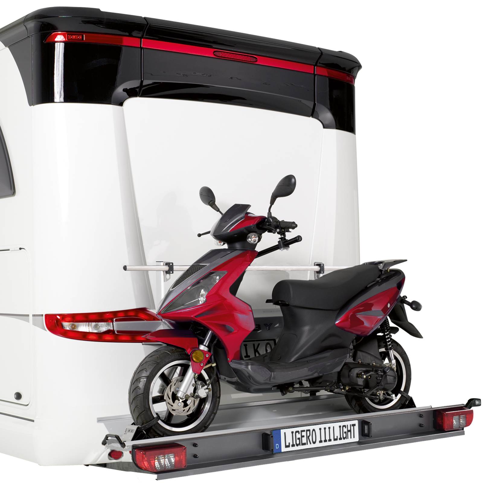 Praktyczne złączki zapadkowe na ramionach trzymających i szynach zapewniają szybkie i łatwe zabezpieczenie - do zabezpieczenia skutera potrzebny jest osobny