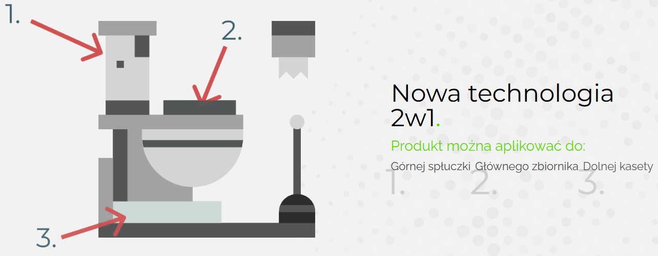 Płyn 2w1: zbiornik główny toalety, dolna kaseta, górna spłuczka
