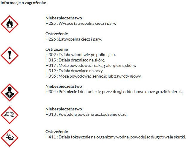 Produkt może uszkodzić soczewki plastikowe, szkło akrylowe i podobne materiały