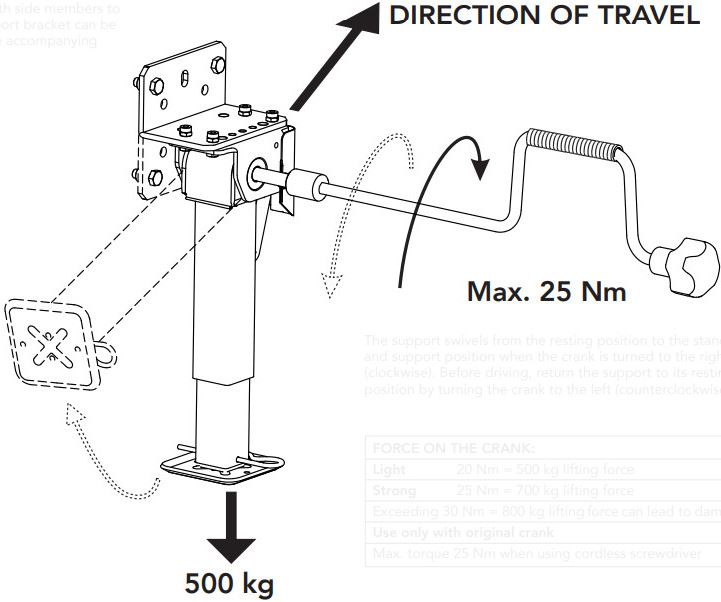 Długa, ręczna korba podporowa zapewnia bezpieczne i szybkie ustawienie kampera
