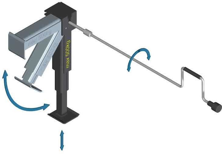 Regulacja wysokości za pomocą korbki dołączonej do zestawu