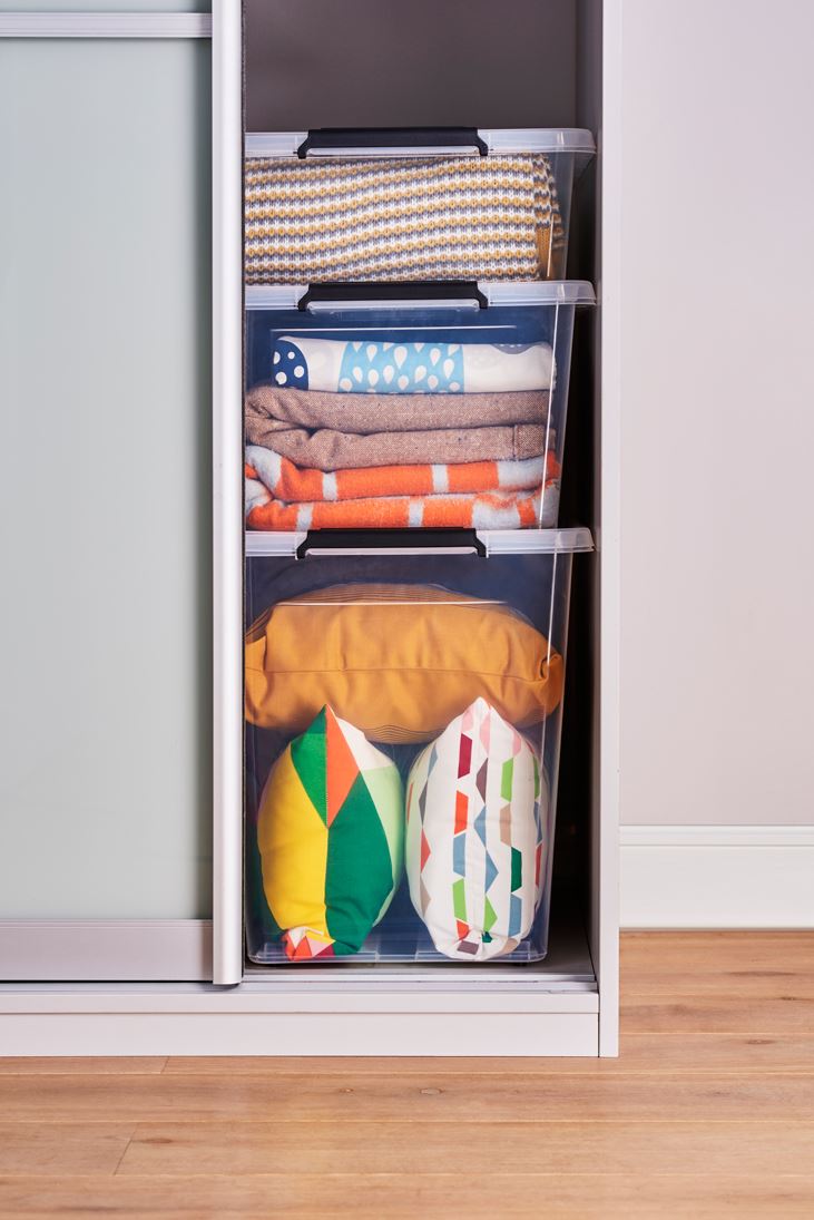 Możliwość ustawiania jeden na drugim: konstrukcja umożliwia układanie kilku pojemników w pionie – oszczędność miejsca