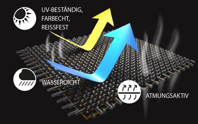 Wodoodporny, nieprzyjmujący zapachów materiał chroniący przed warunkami atmosferycznymi