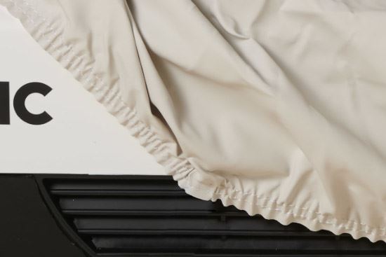 Pokrowiec wykonany z wytrzymałej miękkiej skóry syntetycznej chroni układ klimatyzacji na dachu podczas przestojów